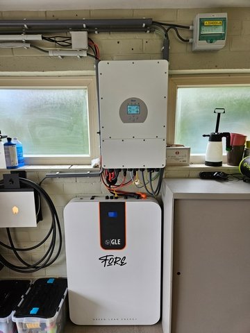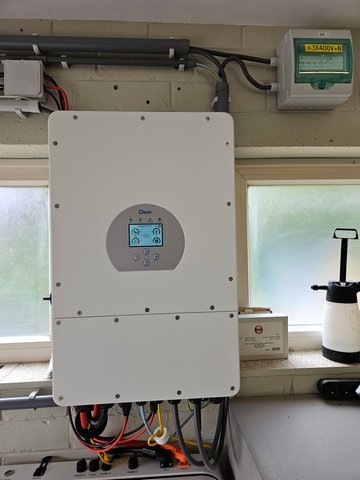 De supercondensatoren worden geplaatst in combinatie met DEYE-omvormers. Het voordeel van deze robuuste omvormers is dat deze standaard voorzien zijn van een backup-uitgang en een smart load uitgang. Hierdoor is het mogelijk om met overproductie bv uw warm water extra te gaan opwarmen als thermische buffer.